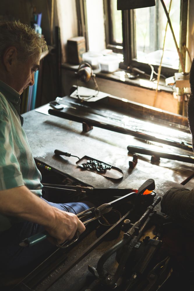 Knoflíky se vyrábějí stejným technologickým postupem jako na konci 19. století a důraz je kladen na řemeslně kvalitně zpracované zboží. Základem jsou skleněné tyče, které se nataví v peci za vysoké teploty a následně mačkáním do mačkacích kleští s negativně rytými niklovými vložkami se vymáčkne skleněný polotovar. Přebytečné sklo se odstříhá a kraje knoflíku obrousí na speciálních brusných kamenech. Takto je knoflík připraven k dekorování pravým zlatem a speciálními vypalovacími barvami, popřípadě vakuovým zušlechtěním. Ruční práce vytváří z každého knoflíku originál.