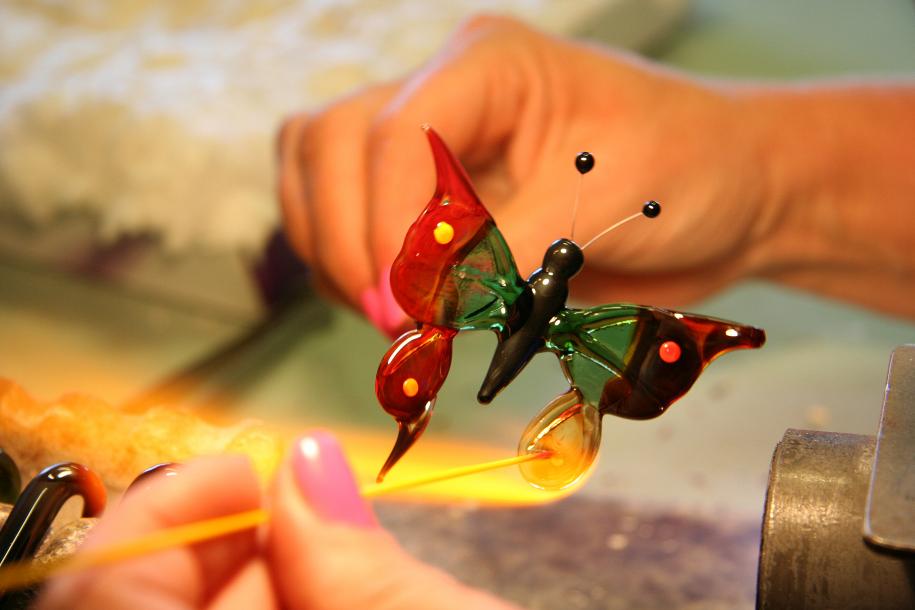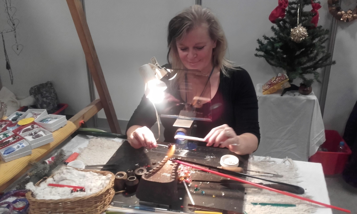 Skleněná bižuterie, vinuté perle a figurky. Rukodělná sklářská výroba a také originální výrobky z keramiky, to vše má v malíku (a ve své dílně) Iveta Valentová.