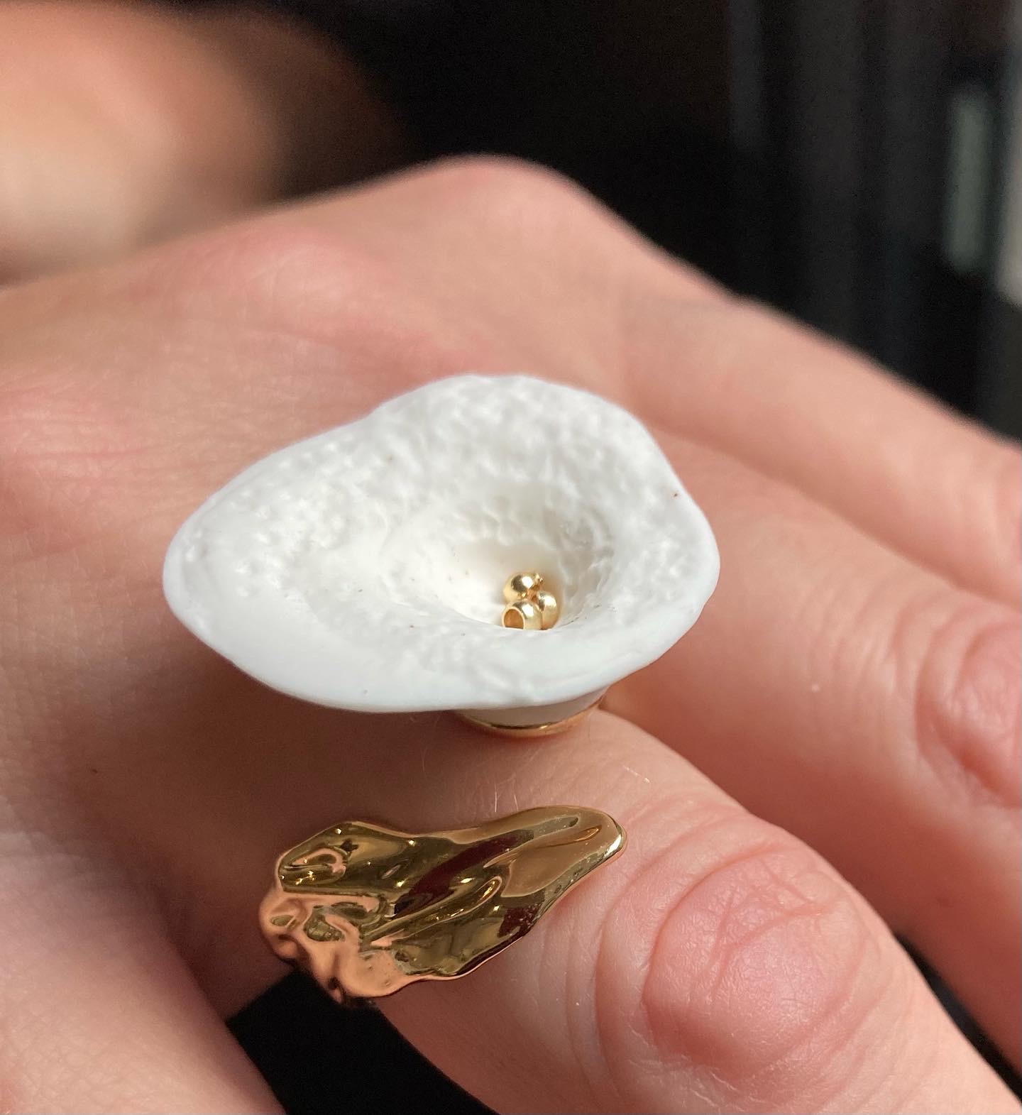 Tam poprvé objevila krásu porcelánu, který si v jeho nejluxusnější bělostné anglické variantě sama dle vlastní receptury míchá. Každý jednotlivý kousek pak ručně vytváří, texturuje a zlatí drahými kovy jako jsou zlato a platina. To vše kompletuje do lokálně pozlacených či rhodiovaných komponentů nejvyšší kvality tak, aby byl šperk hypoalergenní a jeho třpyt vydržel opravdu dlouho. Stejně jako kdyby jej vytvořila příroda je každý výtvor naprostý originál a nikdy nebudou dva kusy stejné.