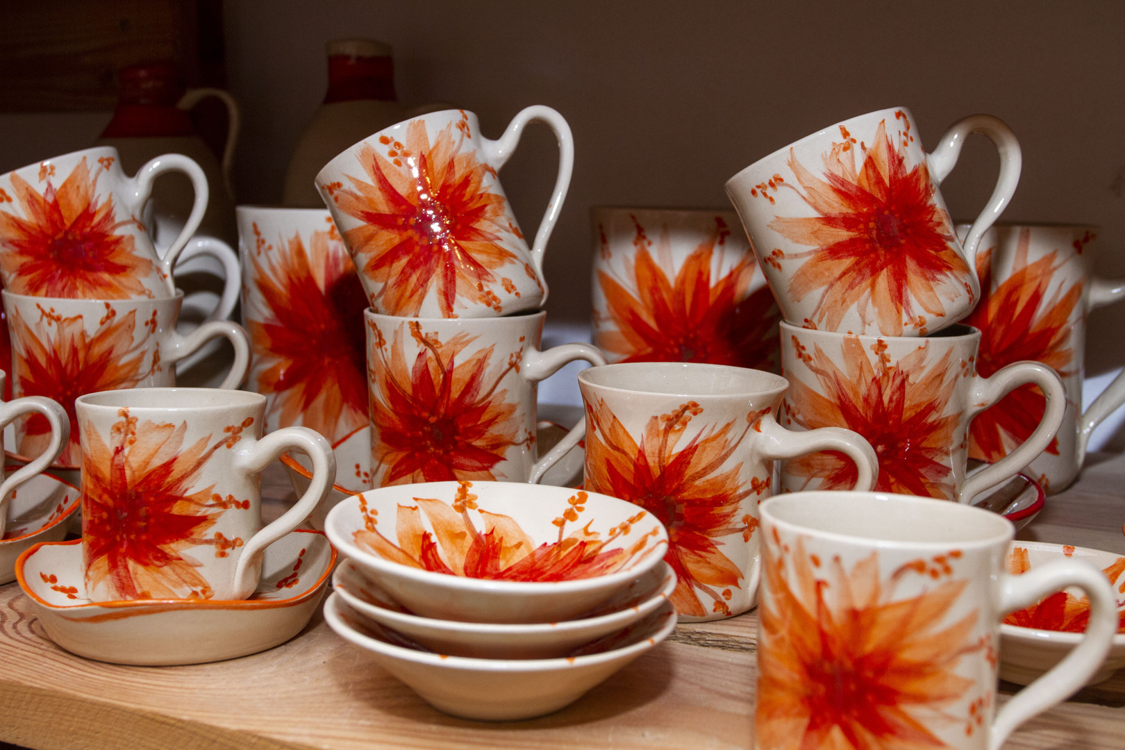Produkce naší dílny je vedena ve čtyřech základních liniích: dárková, dekorativní, užitková keramika a realizace interiérů a zahrad.