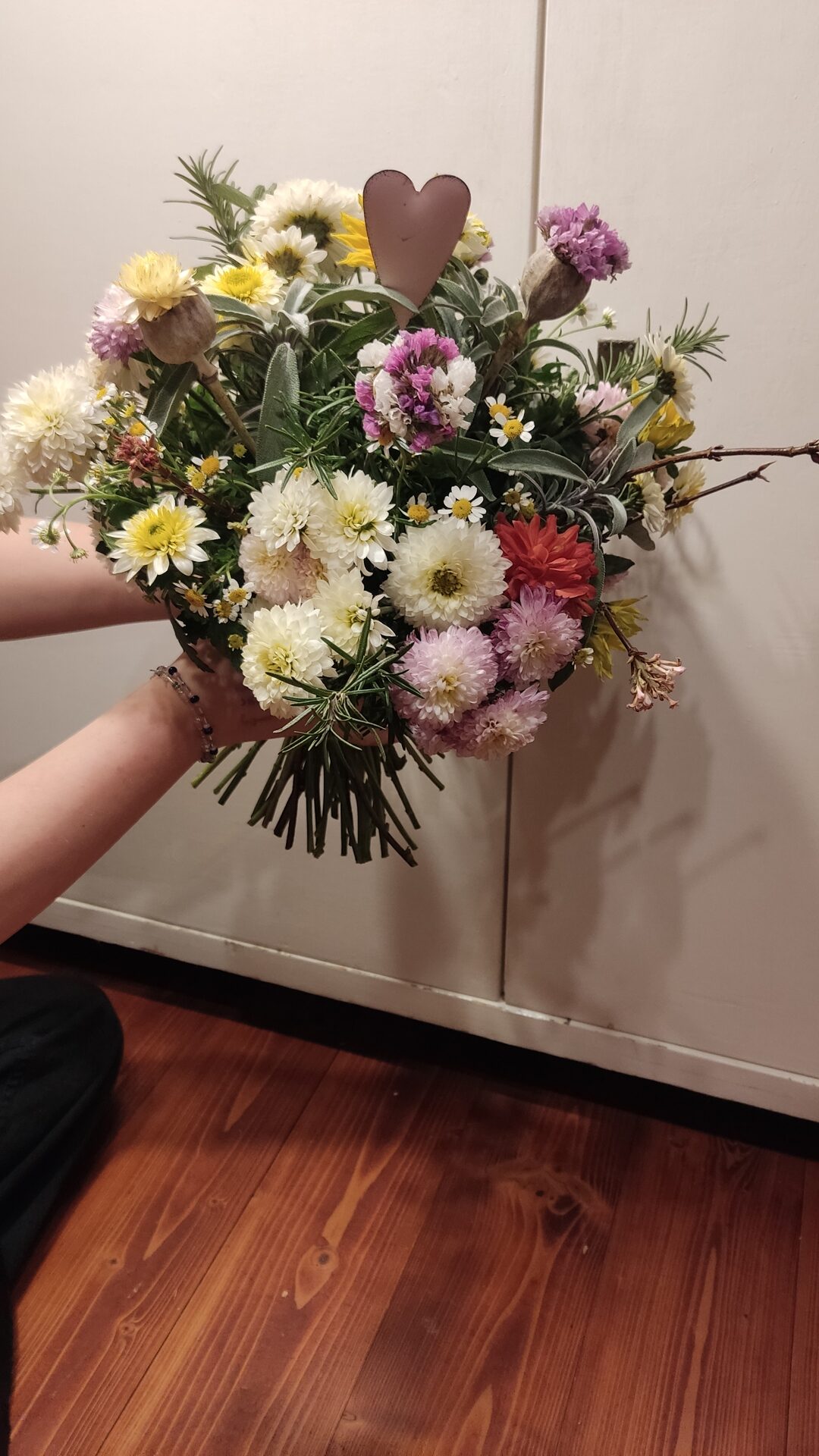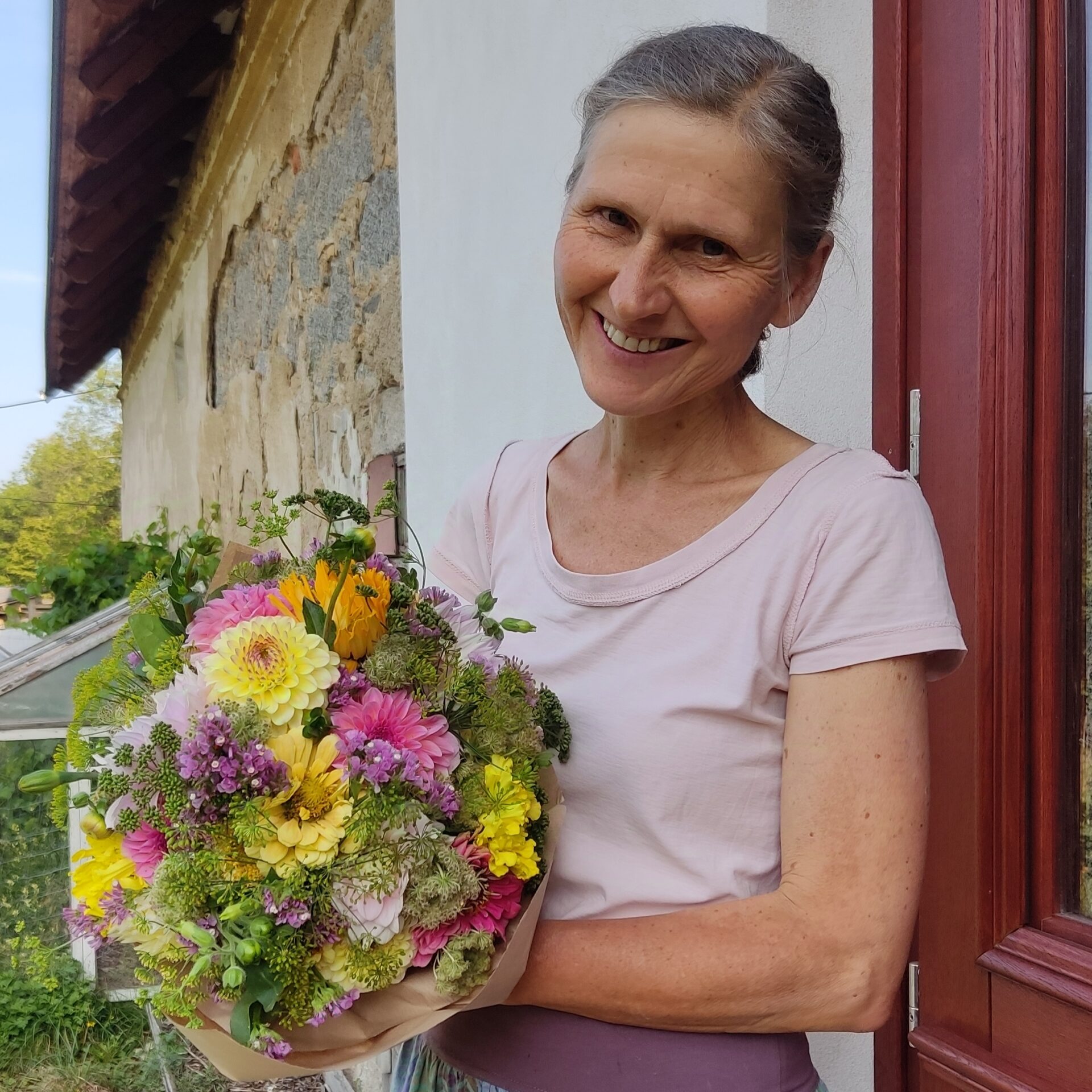 V sezoně od dubna do listopadu (nebo do mrazu) nabízím kytice z čerstvých řezaných květin, vypěstovaných přímo pod horami. V zimním čase nabízím podzimní, adventní a vánoční výzdobu, zimní kytice a sušenou vazbu - kytice, věnečky a další. Dále si na farmě můžete koupit přebytky sadby a semínek - jak květin, tak i zeleniny a sazenice trvalek.