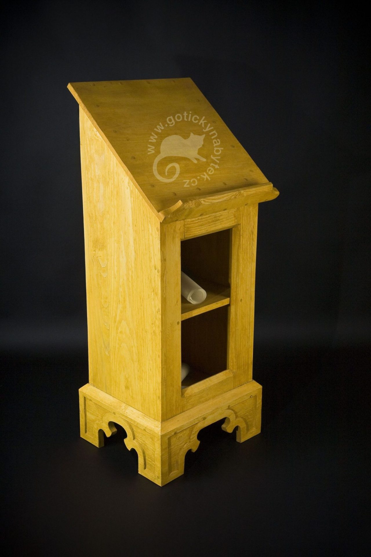 Vyrábím gotický nábytek i nábytek inspirovaný gotikou. Jako předlohy používám nejen dochované kusy z celé Evropy, ale i deskové či nástěnné malířství, iluminace a plastiky.