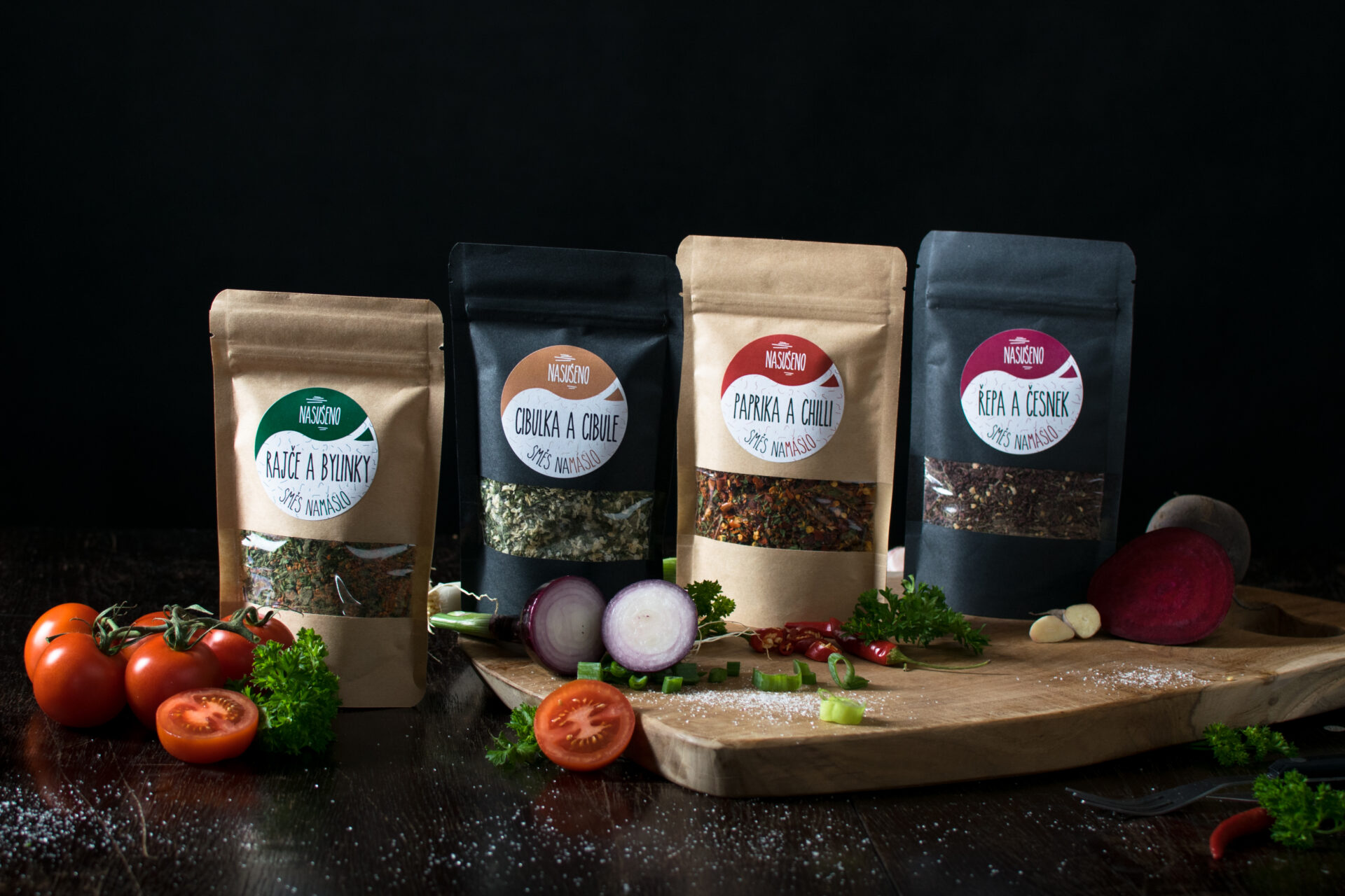 NASUŠENO vyrábí směsi dle vlastních receptur. Obsahují sušenou zeleninu a koření.