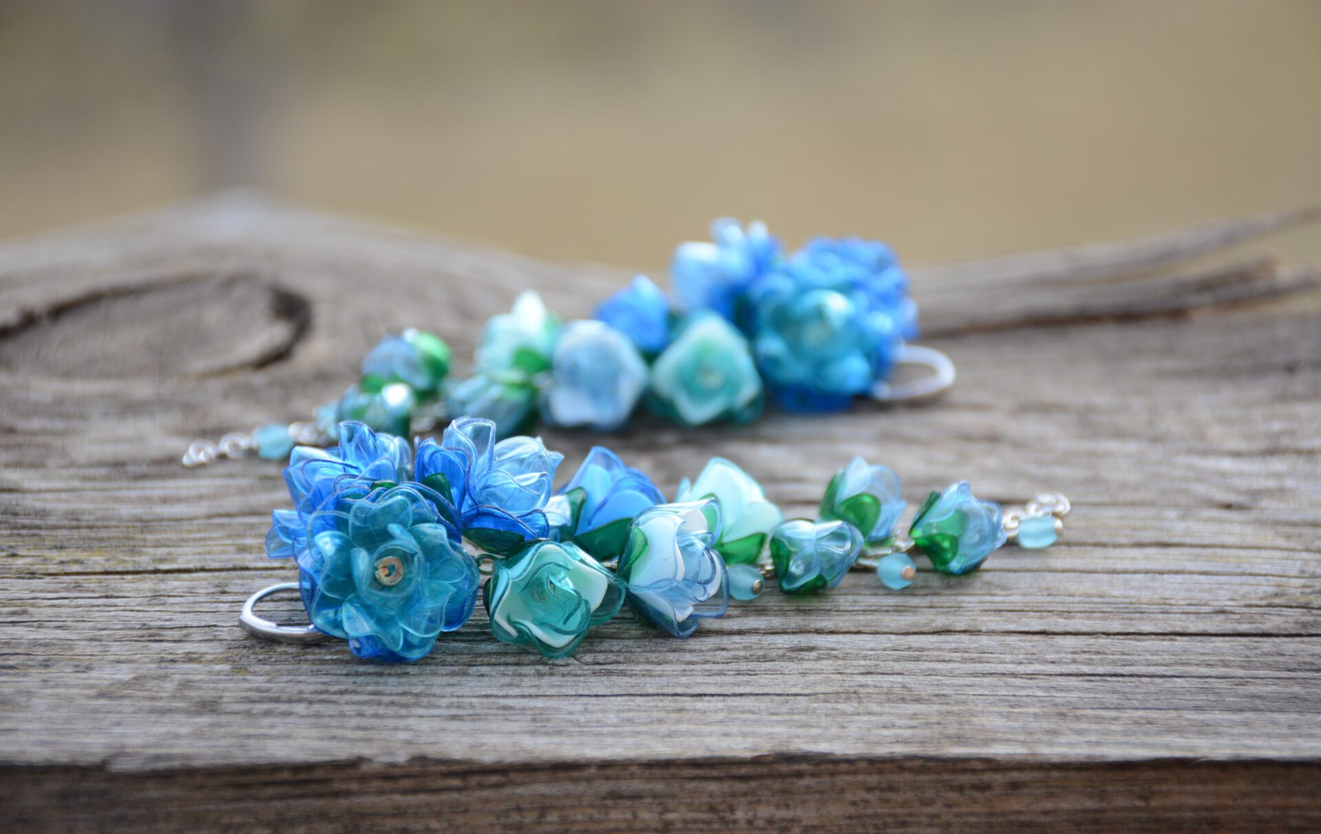 Vyrábím náušnice, náramky a náhrdelníky z recyklovaných PET lahví. Šperky jsou dokonale hladké, ošetřené tak, že neškrábou. Zejména náušnice jsou nesmírně lehounké, a i když v uších vypadají honosně, bohatě, ucho nezatěžují. Na denním světle ještě víc ožijí a rozzáří se tisícem drobných odlesků…