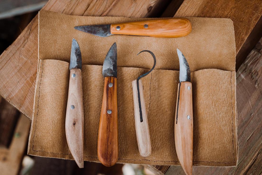 Jedním z výrobků jsou i řezbářské nože, u nichž je možnost vybrat si střenku z různých druhů dřev a různé tvary čepele.