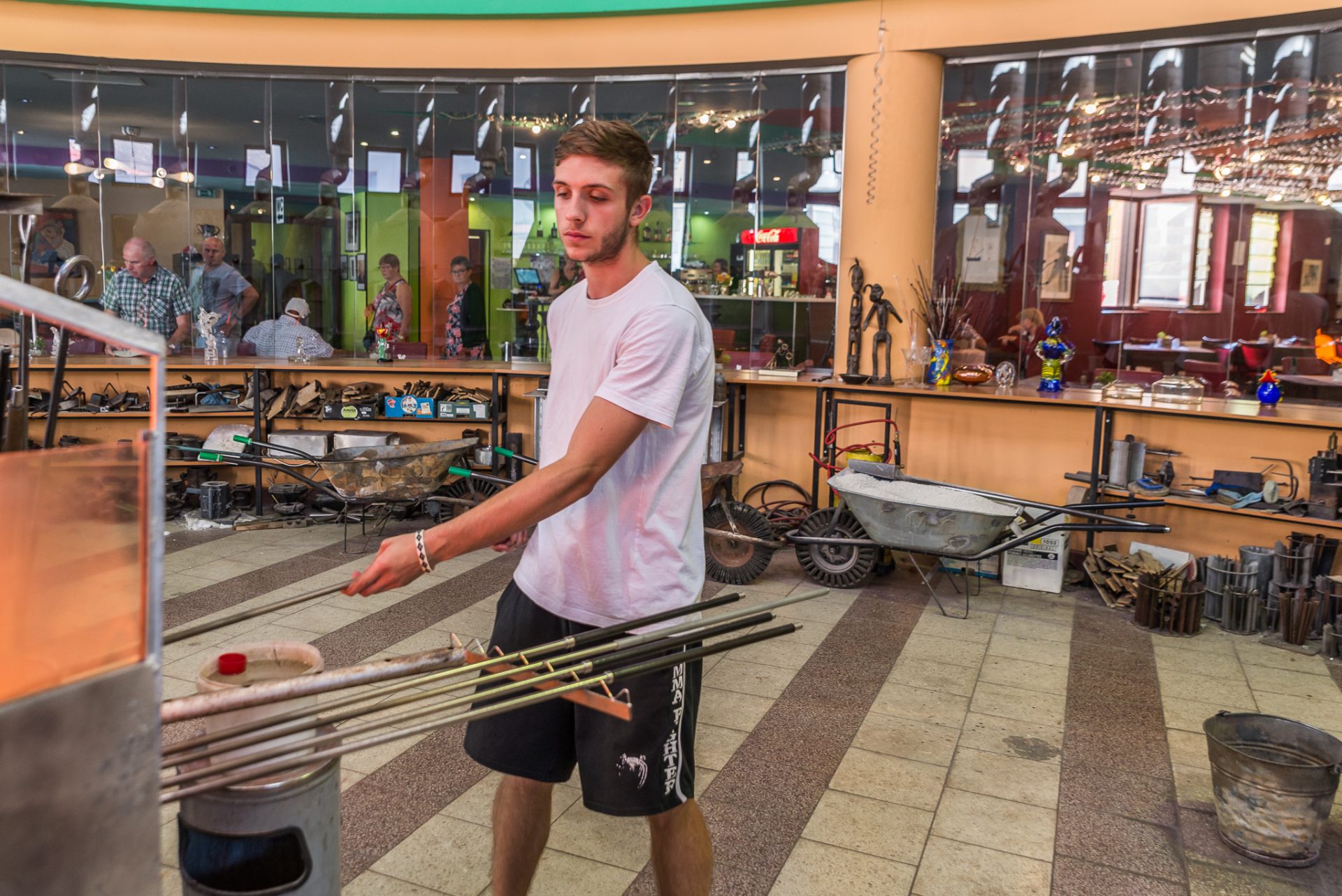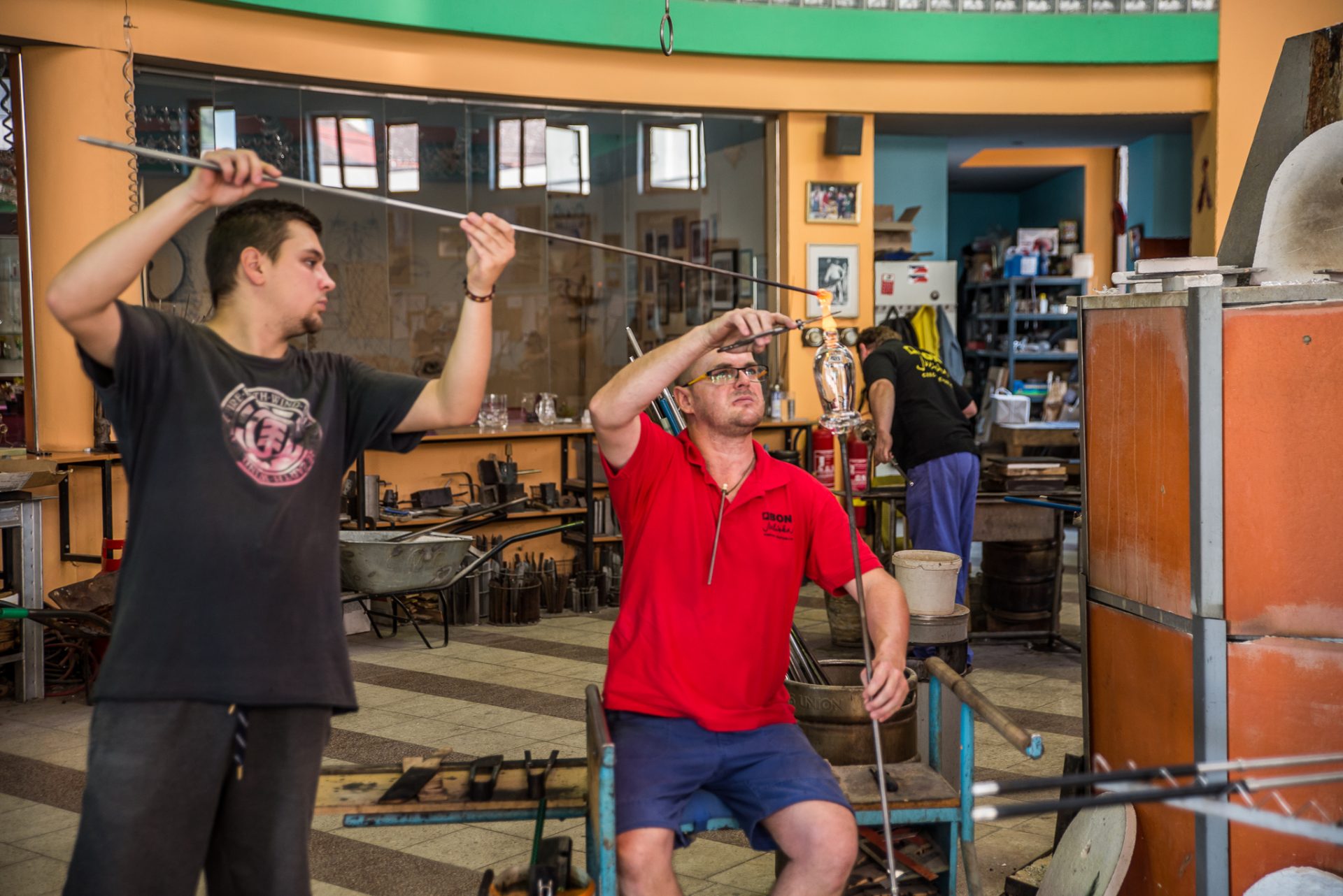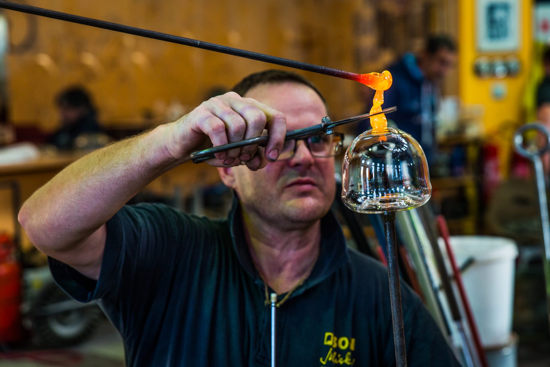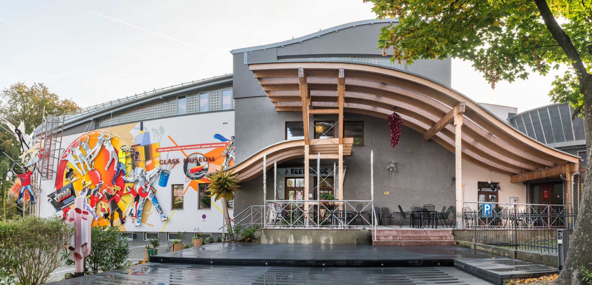 Exkurze - ukázka práce a provoz funkční sklářské dílny. Další aktivity - prohlídka muzea, které nabízí mj. sbírku moderního skla, možnost návštěvy zážitkové restaurace a prodejny skla.
