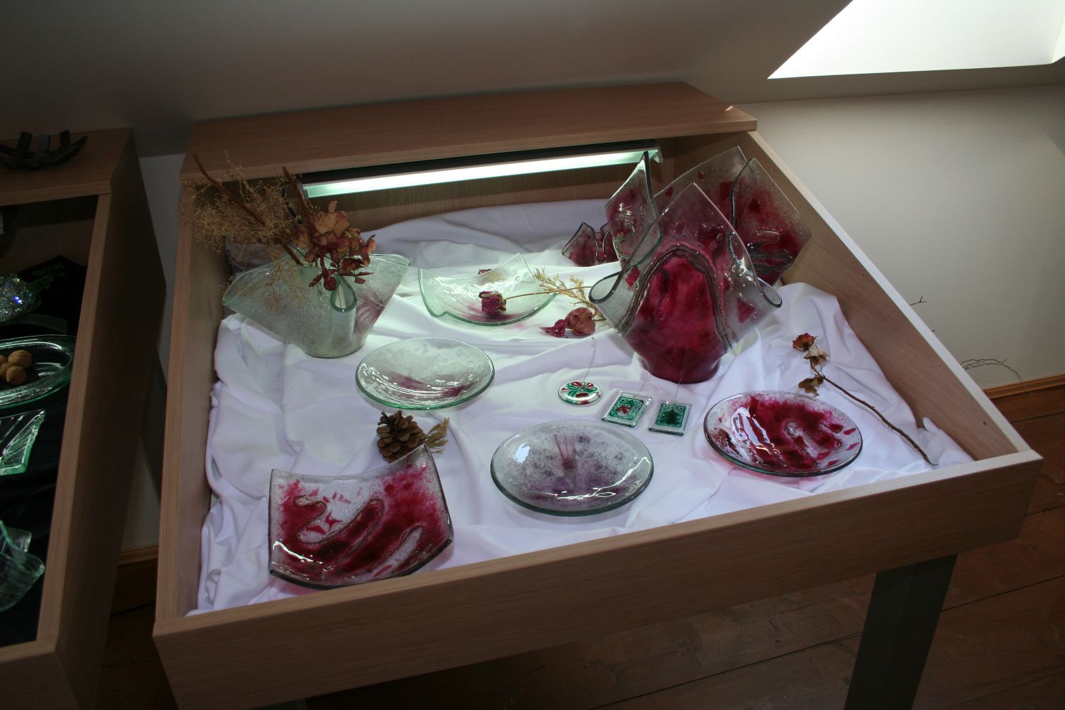 V posledních letech se ateliér specializuje na originální ručně zhotovené skleněné výrobky od nejmenších skleněných šperků (náramky, přívěsky, náušnice atd.) přes užitkové sklo (mísy, vázy, popelníky, svícny, talíře a další) po skleněné monumentální objekty - interiérové plastiky, skleněné stěny a volná sklářská díla.