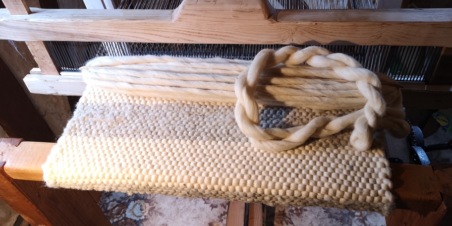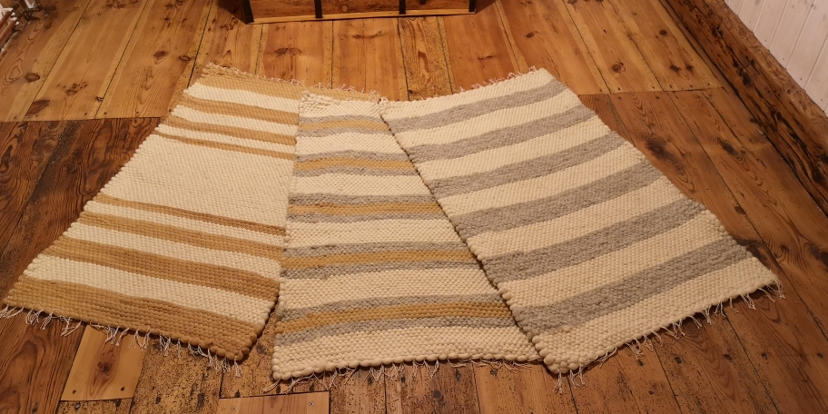 Naše shetlandské ovečky se pasou za chalupou na lukách Frýdlanstkého výběžku. Jejich vlnu i vlnu jiných oveček z okolí zpracováváme výhradně ručně, starými a tradičními postupy. Od místních chovatelů ovcí získávám surovou vlnu, kterou ručně třídím, máčím a peru v dešťové vodě a po dalším čištění suším na sluníčku. Suchou vlnu rozvolňuji a češu na ruční bubnové česačce. Takto upravenou vlnu spřádám na kolovrátku a z příze tkám koberce na tradičním tkalcovském stavu. Část vlny barvím přírodními rostlinnými barvami.