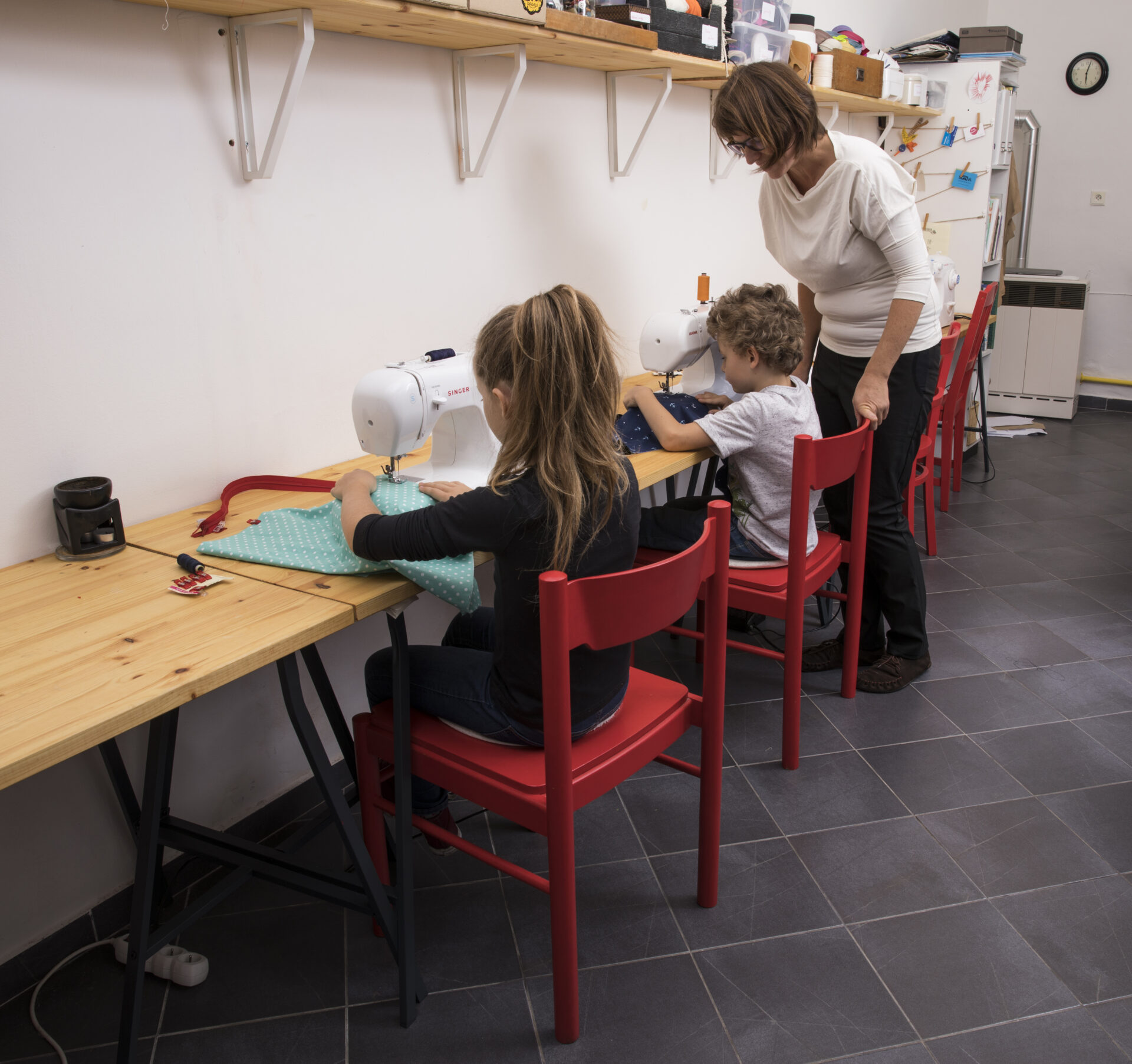 Doma jsem rodinu připravila o jednu místnost a vytvořila svoji první dílnu. A brzy jsem se v ní už nezašívala sama. Přicházely kamarádky, které chtěly tvořit, ale nedokázaly to samy. Vedla jsem známé, ale svoje znalosti jsem nadšeně předávala dál i v rámci projektu